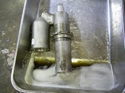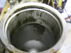 オフロードメインで使用した車両のクッションオイルは一年でこの位の汚れ具合になります。泡はもっと少ないですが... |