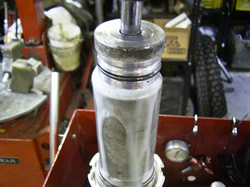 バイクとしては綺麗で状態は決して悪くは無いのですが乗り出してから10年弱になるのでこのようにプラダ内の窒素ガスがクッションオイルに溶け出していて分解と同時にビールのように泡が吹き出します。 |